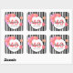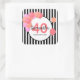 A sticker for a 40th birthday party. Classic slim black and white vertical stripes as background. With girly and feminine pink, coral, peach and golden coloured balloon arch as decoration.