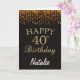40th Birthday Black and Gold Glitter Card with personalized name. For further customization, please click the "Customize it" button and use our design tool to modify this template.