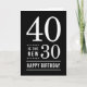 This humourous 40th birthday card features the words "40 is the new 30 Happy Birthday" in white against a black background.