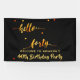 Elegant and modern banner for a 40th birthday party. Black backdrop and faux gold text written with a trendy hand-lettered style script: hello forty. With golden dots as decor. Templates for name and the text: Welcome to …. golden letters. You can change the background colour to match your theme. Click customise and then "select a background colour" on your right.