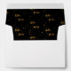 Outside: no background colour. Back: template for a name and address. Inside: Black background and faux gold text written with a trendy hand-lettered style script: hello forty. With golden dots as decor. A simple and trendy envelope for your 40th birthday party invitations, save the dates or thank you cards,