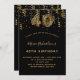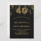 A modern, stylish and glamourous invitation for a 40th birthday party. A black background, decorated with confetti. The name is written with a modern hand lettered style script. Personalise and add your party details. Number 40 is written with a trendy balloon style font, leopard pattern.