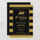 40th Birthday Black Gold Striped Party Invitation