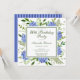 This blue hydrangea 40th birthday party invitation is whimsical and stunning! With its watercolor multi-hued blue hydrangeas, wispy natural greenery, and coordinating blue striped back it is perfect for any woman you love. The script font is modern yet classic! By selecting Personalise this template and typing in your information you can see your gorgeous invitations in seconds!