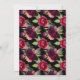 On front: An invitation for a 40th birthday party. A chic black background with a faux gold geometric frame. Decorated with dark burgundy and pink flowers, roses and boho style feathers. Templates for a name and party details. The name is written with a hand lettered style script, golden coloured letters.