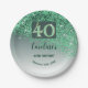 40th Birthday Chic Falling Green Glitter Paper Plate