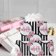 Classic slim black and white vertical stripes as background. With girly, feminine and romantic pink roses as decoration. Perfect for an elegant 40th birthday party for her. White and black frames with templates for name and age. Age number 40 in pink, name and date in black. The name is written with a hand-lettered style script.