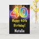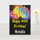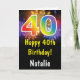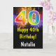 40th Birthday Colorful Rainbow Fireworks Card with personalized name. For further customization, please click the "Customize it" button and use our design tool to modify this template.