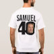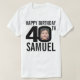 Happy 40th Birthday black and white text, custom front, and back photo, and name t-shirt. Fun 40th personalised photo in bold black and contrasting white birthday tee design. Personalise this birthday shirt with two photographs of the birthday person in the middle of the number 0 on the front and back ideal for a past and present photo opportunity. Great idea for adding some fun to a milestone fortieth birthday party, event, wave, or birthday drive by. Other matching items and colours are available. Exclusive design by Sarah Trett for www.mylittleeden.com