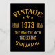 40th Birthday, any year Birthday for him. Double sided. Vintage, limited edition, one of kind, born in 1973, the man, the mith, the legend, any name. Foil on black background.