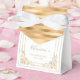 Thank birthday party guests with these elegant favour boxes, featuring an ornate vintage rectangular faux gold frame a white background, with a faux gold foil and satin striped back and flap. Personalise them with the guest of honour's name in gold coloured script, along with the occasion and date in gold copperplate font.