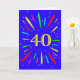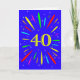 An explosive 40th birthday card! What a wonderful way to send birthday greetings. The number 40 in bright yellow with an explosion of bright colours and stars.