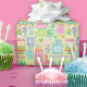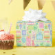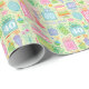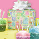 40th birthday bright pastel cakes, party hats, balloons and presents are scattered on this festive wrapping paper.