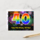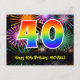 40th Birthday – Fun Fireworks Pattern + Rainbow 40 Postcard