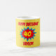 Made especially for the superhero lover, everyone can be a superhero with this 40th birthday theme mug. With a yellow background “Happy Birthday” is written in red thick “Bangers” font. A blue and red explosive “pow” 40 is displayed in yellow font. Underneath the design is a template for the superhero's name.