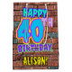 The front of this fun birthday gift bag design features the message “HAPPY 40TH BIRTHDAY,” having a colourful, vibrant, graffiti-inspired look, along with a personalised recipient name. The background features a pattern inspired by the look of a brick wall. A vibrant gift bag like this might be used when wrapping presents being given to somebody in celebration of their fortieth birthday. [~Z0000536]