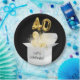 Gold balloons with sparkles and ribbons in a white box on black background for 40th birthday party.