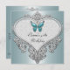Invitation 40th Birthday Heart Soft Teal Blue Butterfly jewel 3