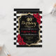 Elegant black white red design with faux glitter. Black and white stripes with red roses. Perfect for an elegant birthday party.
