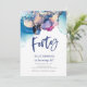 Modern 40th Birthday invitation with navy blue, aqua and pink abstract watercolors and a matching back page.