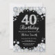 40th Birthday Invitation Chalkboard Silver Diamond