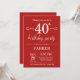 40th Birthday Invitation with Red Background. Adult Birthday. Men or Women Bday Invite. 13th 15th 16th 18th 20th 21st 30th 40th 50th 60th 70th 80th 90th 100th, Any age. For further customisation, please click the "Customise it" button and use our design tool to modify this template.