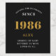 1986 Vintage 40th Birthday Black & Gold Elegant Wine Label. Celebrate your milestone with our exclusive 1986 Vintage 40th birthday wine label. The meticulously designed label with stunning black and gold hues effortlessly enhances the visual appeal of your favourite wine. The year 1986, prominently featured on the label, adds a nostalgic throwback to the day of your birth. Using premium quality material, this label ensures longevity, further cementing its place as a memorable keepsake from your special 40th Birthday celebration. In addition, enjoy the benefit of personalising this label with your name, adding a unique and intimate touch to your celebration. • Stunning Black & Gold Design: Infuses an aura of sophistication & elegance to any wine bottle, making it a perfect centerpiece for your 40th birthday celebration