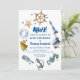Nautical themed birthday invitations are a hot theme for Summer 2024. This whimsical design is perfect for a 40th birthday party. It features sailing items such as a ships wheel, ships bell and anchor. Ocean theme items such as a starfish and seahorse. And where would sailors be without a lighthouse or the romance of a message in a bottle. Modern typography brings your invitation to life. All of the text is editable and is easy to customise.