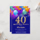 40th Birthday Navy Blue and Gold Colourful Balloon Invitation
