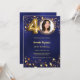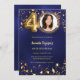 A modern, stylish photo invitation for a 40th birthday party. A navy blue background, decorated with faux gold stars. The blue colour is uneven. Personalise and add your photo and party details.