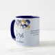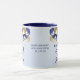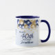A stylish 40th birthday mug . Design features navy blue and gold balloons, Gold glittery starts and navy blue text all on a pale blue gradient background. A lovely gift for a 40th birthday party celebration. Easy to customize with your own details.