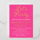 Hello Forty. Modern, QR Code, neon pink, black and gold foil, stylish 40th birthday invitations. You can personalise it with your own details.