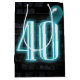 Glowing 40 neon sign on dark brick wall background with a transparent aqua balloon for a 40th birthday.