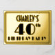 The front of this elegant fortieth birthday celebration/party foil invitation features a personalised name, a large art deco look inspired number “40th”, the message “BIRTHDAY PARTY”, and a border pattern consisting of lines. The back features personalised details about the event, such as the date, time, location/venue, and any other information that may be important. Stylish, luxurious, editable invitations like these might be used to invite guests to a birthday party being held to celebrate somebody’s 40th birthday. [~Z0000592]