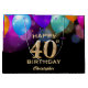40th Birthday Party Black and Gold Balloons Large Gift Bag