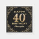 40th Birthday Party Black and Gold Glitter Frame Napkin