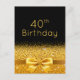 Elegant, classic, glamourous and feminine style party invitation. A faux gold coloured ribbon and bow with golden glitter and sparkle, a bit of bling and luxury for a fortieth birthday. Black background. With the text: 40th Birthday on front written with modern block letters.