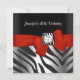 40th Birthday Party Black Zebra Stripe Red Bow Invitation