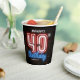 40th Birthday Party Cool Glowing Neon Sign Custom Paper Cups. A fun and retro 80s style neon sign birthday party design, with a rustic looking brick wall background. The design is simple with a hint of humour and customisable photo! Check out the collection for other matching party decor!