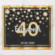 An elegant, glamourous and girly 40th birthday wine or sparkling wine bottle label. Black coloured faux glitter with faux golden diamond sprinkle and a golden frame. Templates for a name, age 40 and a date. Date of birth or the date of the party/anniversary. White and golden coloured letters. The name is written with a hand-lettered style script.