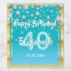 An elegant and glamourous 40th birthday wine or sparkling wine bottle label. Teal, blue green coloured faux glitter with faux diamond sprinkle and a golden frame. Templates for a name, age 40 and a date. Date of birth or the date of the party/anniversary. With the text: Happy Birthday! White and teal coloured letters. The name is written with a hand-lettered style script.