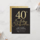 40th Birthday Party Elegant Black & Gold Glitter Invitation