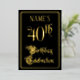 The front of this opulent and ornate foil fortieth birthday party/celebration invitation design features the message “40th Birthday Celebration” in luxurious script-style text. It also has an editable name. The background of the front is coloured black by default (although it can be customised to a different colour). The back features personalised details about the event, such as the date, time, location, and any other relevant information. Fancy, elegant, editable invitations like these might be used to invite guests to a birthday party being held in celebration of somebody’s fortieth birthday. [~Z0000589]