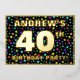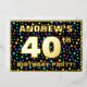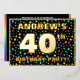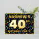 The front of this fun and upbeat fortieth birthday celebration foil invitation card design features a personalised name, a large number “40th”, the message “BIRTHDAY PARTY!”, and a border. The background of the front features an eye-catching, colourful starfield pattern. The back features personalised details about the event, such as the date, time, venue, and any other relevant information. Customised invitations like these might be a fun way to invite guests/attendees to a birthday party being held to celebrate somebody’s 40th birthday. [~Z0000600]