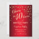 40th Birthday Party - Gold Red Invitation