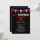 This fun 40th birthday party invitation celebrates 40 in flag style with black as the backdrop for white and red flags on which the word H A P P Y is spelled out. The words "40th Birthday Celebration" appear below the flags, as do all the 40th birthday party invite details. This is a great modern typography flag birthday party invite for a 40th birthday. Copyright henishouseofpaper