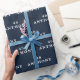 Personalised, modern, elegant, navy blue and white, 40th Birthday wrapping paper. Perfect for him. 40th birthday party.