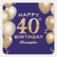 40th Birthday Party Navy Blue and Gold Balloons Square Sticker