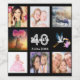 A bottle label for a 40th birthday party, celebrating her life with a collage of 8 of your photos. Templates for a name, age 40 and a date. Date of birth or the date of the party. White and gray colored letters. Elegant black background.