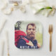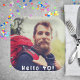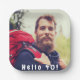 Personalise and add Your photo. White text overlay: Hello 40! A paper plate for a 40th birthday party for him. Matching paper napkins available in our store!